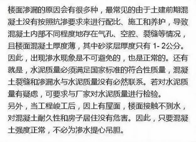 為了避免或減輕樓面混凝土的滲漏水情況,在此小編想提醒大家在施工中應(yīng)采取以下主要措施: