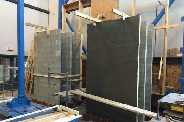 在實驗室測試中,將10厘米厚的EDCC應用于由傳統(tǒng)混凝土塊制成的墻壁上,然后受到9.0-9.1級的模擬震擊(與2011年日本東北地震震級相同)。這些墻面并未倒塌,而為噴涂EDCC的對照物則倒塌。