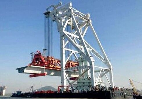在大橋建設(shè)現(xiàn)場,記者看到,遼闊的海面,海天輝映的地方,三一紅顯得格外耀眼,不遠處的三一設(shè)備正“辛勤工作”。