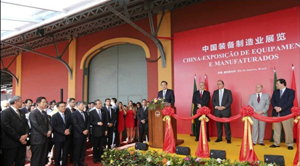 當(dāng)?shù)貢r間20日,李克強在里約熱內(nèi)盧州州長佩藏和巴西外長維埃拉的陪同下來到里約民港碼頭,參觀正在這里舉辦的中國裝備制造業(yè)展覽,并為展覽開幕剪彩。展覽包括鐵路及軌道交通、電力、通信、金融等10個板塊,代表國內(nèi)裝備制造業(yè)最高水平的30家中國企業(yè)參展。