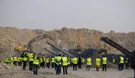 工地參觀也是此次論壇的重要環(huán)節(jié)。全體嘉賓來到山東淄博依廠礦業(yè)的石灰石采石場(chǎng),近距離了解克林曼移動(dòng)式破碎篩分設(shè)備的性能及生產(chǎn)出的骨料質(zhì)量。