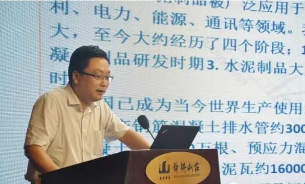 ▼ 中國(guó)混凝土與水泥制品工業(yè)協(xié)會(huì)排水管專家褚建中做“綜合管廊及海綿城市的預(yù)制混凝土構(gòu)件”的演講;