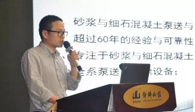 ▼ 中聯(lián)重科干混部技術(shù)總監(jiān)吳漫天做“預(yù)拌砂漿3.0”的演講;