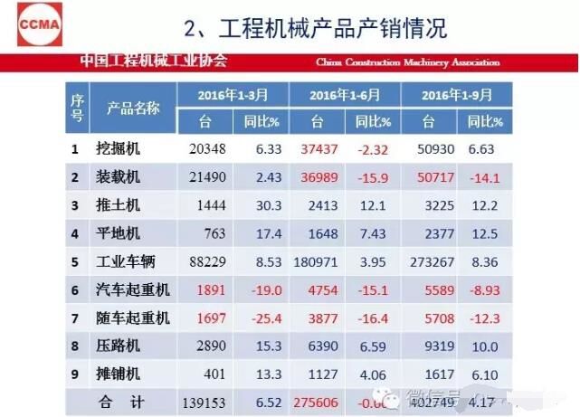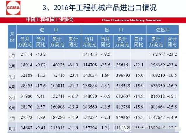 今年9月份挖掘機同比銷量增加71.4%,1到9月增長26.3%。出口還是在高位,但是還有13%左右的降幅。在裝備制造業(yè)里,尤其是機械行業(yè)里,我們還是比較好的,進口的數(shù)是越來越少。