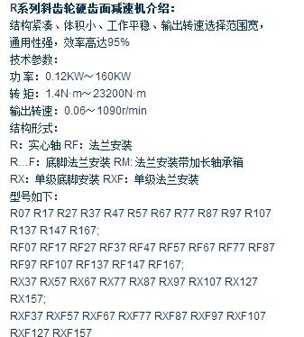 歸屬行業(yè):R系列斜齒輪硬齒面減速機