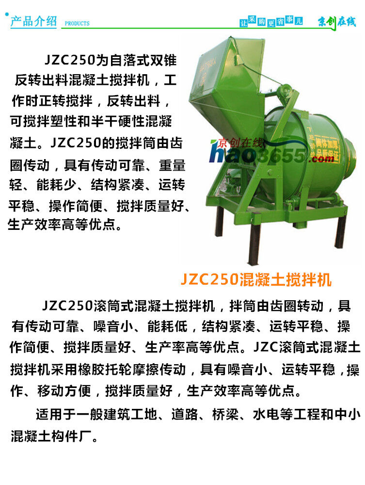 歸屬行業(yè):JZC250自落式雙錐反轉(zhuǎn)出料攪拌機(jī)