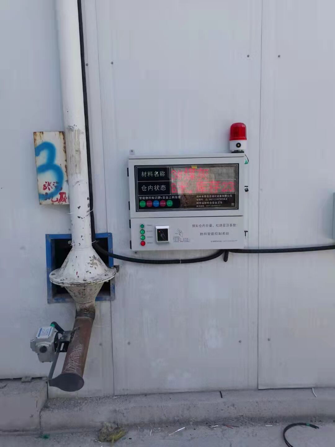 地面顯示終端:每料倉配備一臺(tái),用于料位觸發(fā)阻旋開關(guān)的聲光報(bào)警和實(shí)時(shí)顯示料倉重量及百分比,便于及時(shí)提醒操作人員采取措施,避免事故發(fā)生。